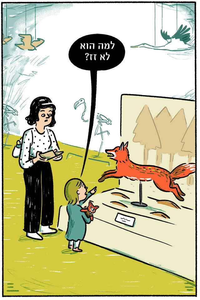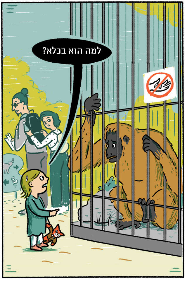 למה הוא לא זז? • זה של מישהי שכבר מתה? • למה הקוף מאחורי סורגים? • למה האישה הזו מחזיקה ראש ביד? • כמה שאלות שהקטנה עלולה לשאול, שאין עליהן שום תשובה (והשאלה האחרונה קשה במיוחד) • מחליפה צבעים: מדור מאויר