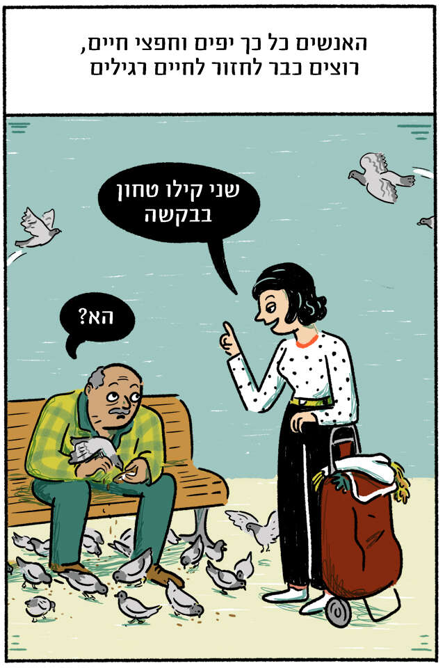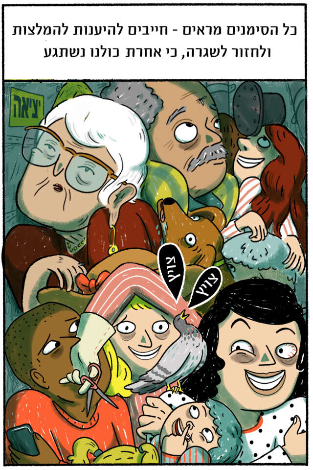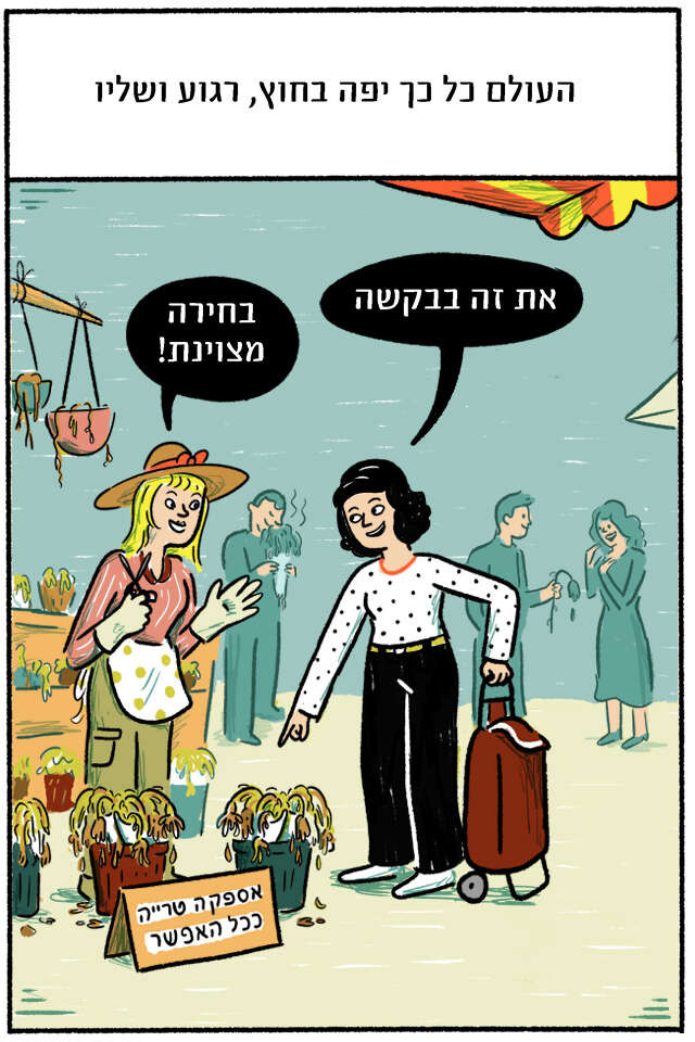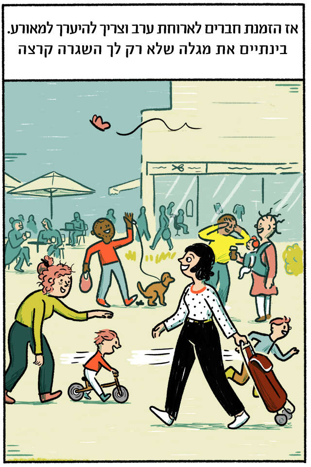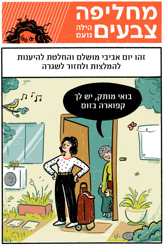 החלטת להיענות להמלצות ולחזור לשגרת חירום, או לחירום שגרתי • גילית בחוץ עולם יפה, רגוע ושליו, ובעיקר נורמלי • וכשהכל כל כך נורמלי, לא פלא שקרה לך מה שקרה • מחליפה צבעים: מדור מאויר (לימי שגרה)