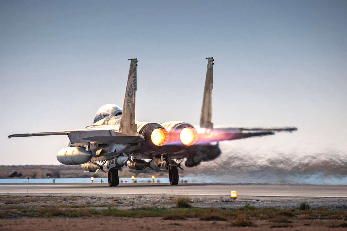 הסילון האווירי. מטוס רעם ממריא בשעת ערב לתקיפה מתוכננת באיראן, כשהאוויר מתערבל סביבו בתחושת מתח ודריכות