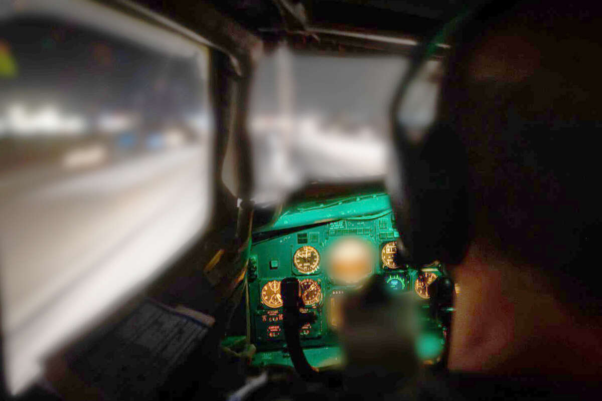 תא לחץ. המראה מבסיס נבטים לגיחה באיראן במטוס תדלוק, באור ראשון. מבט מתוך תא הטייס