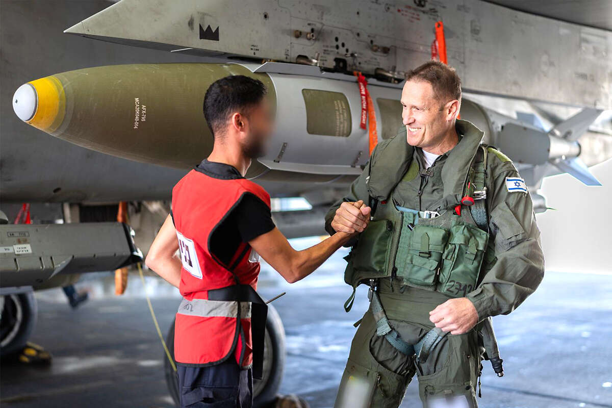 רוח המפקד. מפקד חיל האוויר, אלוף תומר בר, לוחץ את ידו של הטכנאי שהכין את מטוסו לפני גיחה לאיראן, במחווה אנושית חמה של הערכה ואמון הדדי