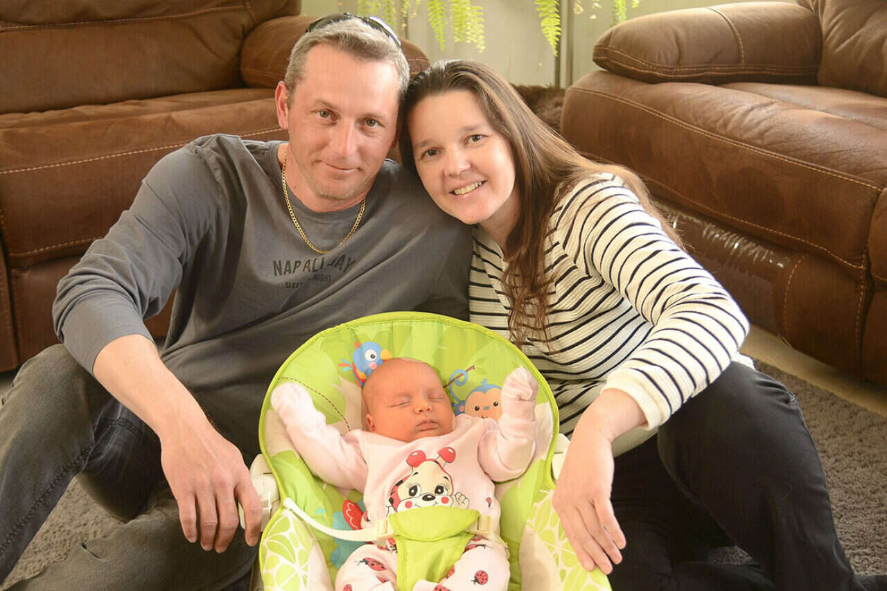 שמונה שעות אחרי הלידה, כשהיא יושבת על הכורסה שבחדר, היא ראתה לראשונה את אמילי והחזיקה אותה בזרועותיה. "כשהביאו אותה היא ישנה, והיא היתה כל כך קטנה, ושברירית, והיינו כל כך נרגשים לראות אותה, לא האמנו שהיא שלנו. אחרי כמה רגעים היא התעוררה ובכתה, ואז האמנו שהיא שלנו", היא מוחה דמעה קטנה בזווית העין.