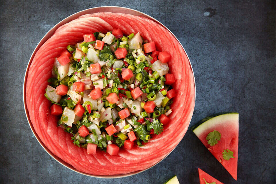 סביצ'ה דניס עם עשבי תיבול ואבטיח
