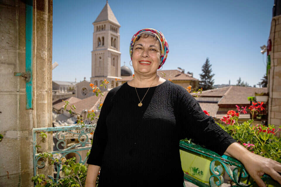 "הבית הזה, שנקרא 'נאות דוד' ומתגוררות בו עשר משפחות יהודיות, הוא היסטוריה שלמה", היא אומרת במרפסת פרחונית שצריחים וכיפות עגולות נשקפים ממנה. "המבנה בן 200 שנה. האזור הזה מלא סיפורים בלי סוף, כך שאנחנו חיים בין הסיפורים".