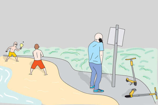לגבי המנהג הישראלי להשליך קורקינטים חשמליים באמצע המדרכה או בשיחים, חשוב להבהיר לאורחים שמדובר במיצגים של סטודנטים לאמנות, שמעדיפים ליצור במרחב הציבורי, תוך שילוב בין חומרים כמו מתכת, פלסטיק והיביסקוס.