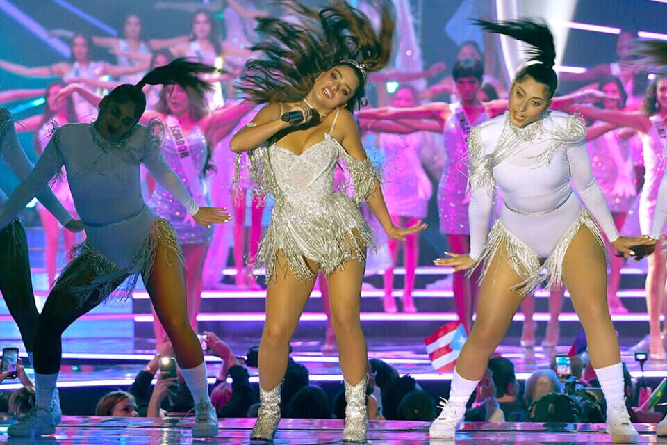 הזמרת הצעירה, שלפני שבועיים גם קיבלה דרגת סמלת, פתחה את האירוע כשהיא מלווה ב־16 רקדניות והופיעה מול מיליוני צופים. הייתי שם, וצפיתי בה ממרחק שני מטרים. ניסיתי לדמיין את מדד הלחץ של מי שהרגע נחתה ממיליון הופעות בפסטיגל, ובעוד רגע תחזור לשם, ובאמצע צריכה להופיע מול מיליוני צופים בעולם.