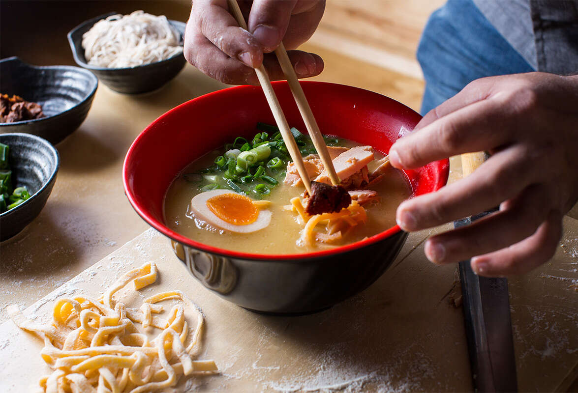 מרק הראמן נאכל ברעש גדול וברצף של נשיקות קטנטנות, שנועדו לקרר את האטריות המיוחדות שהעניקו לו את שמו ולהחמיא לטבח • צליל אחד קבוע בתזמורת של אינסוף גרסאות מענגות