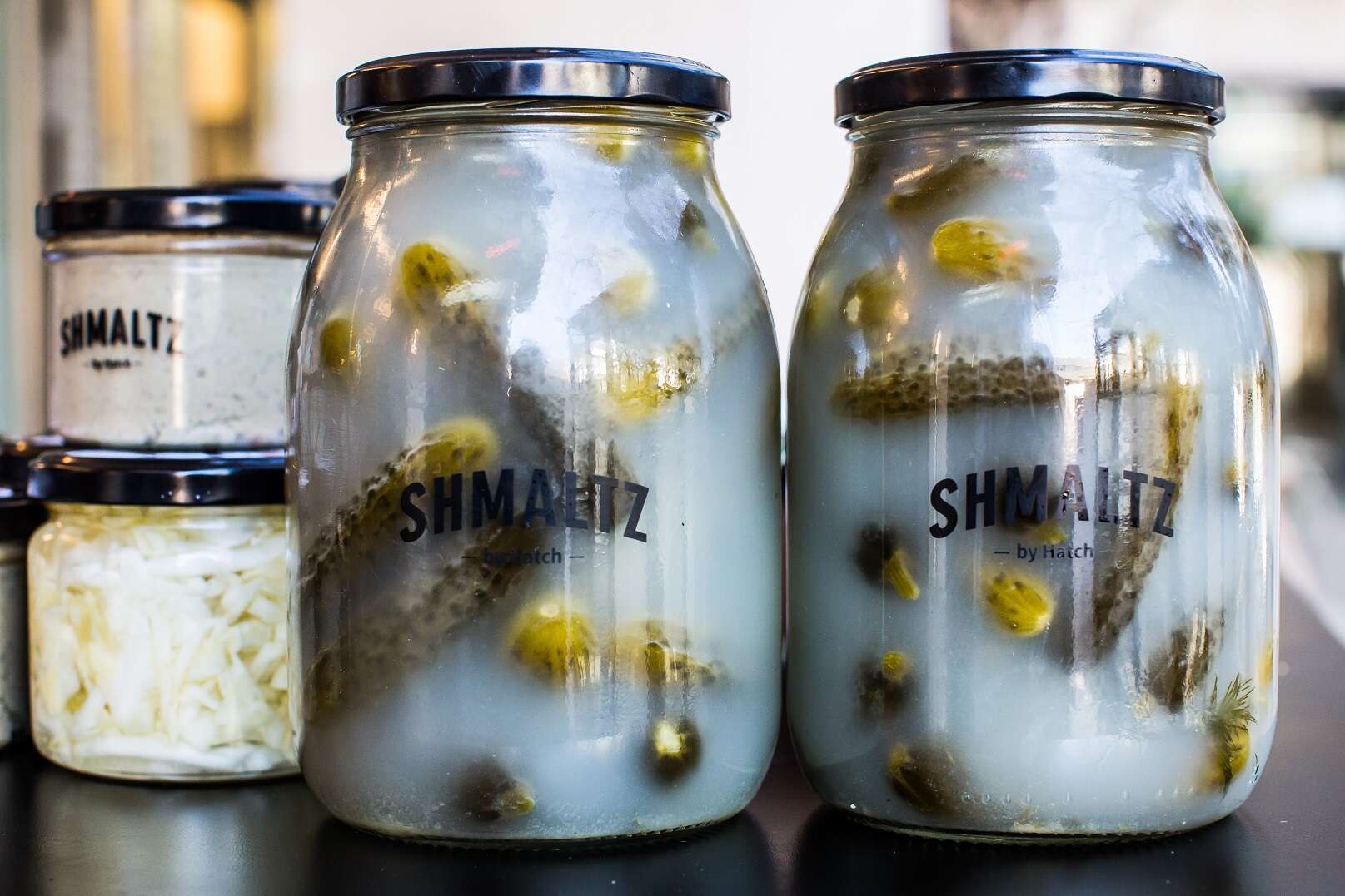 אצלו במכל מותססים מיני פלפלים חריפים, העומדים בבסיס אוסף רטבים ומטבלים המלווים את המנות המוצעות במקום, שחלקן הגדול נע על ציר החמוץ־מתוק. "זה טעם שהתקבע במטבח האשכנזי, כי בשבתות שימרו הרבה מהאוכל בחומץ, שאותו איזנו בסוכר", הוא אומר, מושיט לי צנצנת קורנישונים, אותם מלפפונים קטנים ומוצקים שעל עורם הירוק גבשושיות ושאותם הוא מתסיס במלח.
