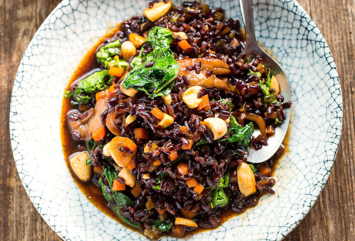 מעט אנשים מכירים את האורז הזה, אבל שווה לחפש אותו במעדניות נבחרות או בחנויות טבע. את המתכון שלפניכם אני מגיש לא מעט במסעדותיי השונות לאורך השנים, וחשבתי שהגיע הרגע הנכון שכולכם תכירו אותו. האורז מתבשל בסיר מים גדול, ממש כמו פסטה, ומסונן בסוף הבישול. לאחר מכן אני מאדה ירקות ופטריות, מוסיף את האורז המבושל, מתבל במנעד הטעמים והעולמות שאני אוהב לחבר - למשל, רוטב סויה לצד סילאן, כוכב אניס ושקד טבעי קצוץ, מוסיף קייל ומגיש. התוצאה? ארוחה שלמה, מזינה, צבעונית וטעימה.