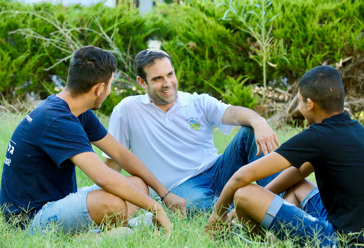 עדיאל בר שלום עם נתנאל (מימין) ונדב, שסיימו ללמוד בכפר בשנה שעברה // צילום: אורן כהן // "בהתחלה היינו מתמודדים עם עשרה מקרי אלימות ביום, היום זה מקרה אחד בשבועיים". עדיאל בר שלום עם נתנאל (מימין) ונדב, שסיימו ללמוד בכפר בשנה שעברה