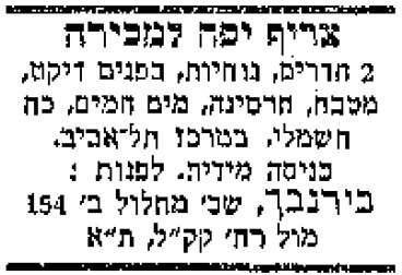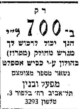 בתחילת פברואר 1952 הודיע יזם קבלני בשם חביב שיבר ש"בקרוב יחל בשיווקן של כ־10,000 דירות אקונומיות (חסכוניות) שייבנו על גגות הבתים בתל אביב". לדבריו, כל דירה תימכר "במחיר 350 לירות בלבד". שיבר הציג בפני הלקוחות הפוטנציאליים עשר דירות חדר זעירות שבנה על גג בניין ערבי ביפו – ובתגובה נעמדו המוני רוכשים נלהבים בתור להפקיד בידיו דמי קדימה. אלא שכעבור חודשים אחדים התערבה העירייה במפגע המסתמן, ושלחה פועלים להרוס את ה"מעברה" ששיבר תכנן להקים על גגות תל אביב. בצילום: העיר הלבנה ממעוף הציפור, שנות ה־40.
