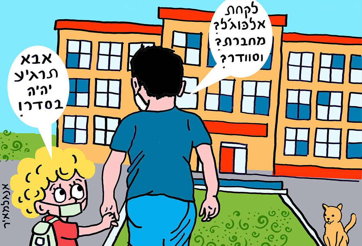 היום הדברים שונים, כביכול. הלכנו איתך לשני ימי הסתגלות, כבר הכרת את המחנכת ואת חברייך לכיתה, והכל אמור ללכת יותר חלק. אבל שום דבר לא באמת השתנה. אולי בניין בית הספר שלך נראה קצת יותר צבעוני משלי, אבל ביום הראשון גם לך הכל ייראה זר, ההמולה תהיה מאיימת, וכל הילדים האחרים ייראו לך מלאי ביטחון. אני מכיר אותך, אין לך דרך להתחמק מזה. אולי זה בגנים, אולי זו אשמתי.