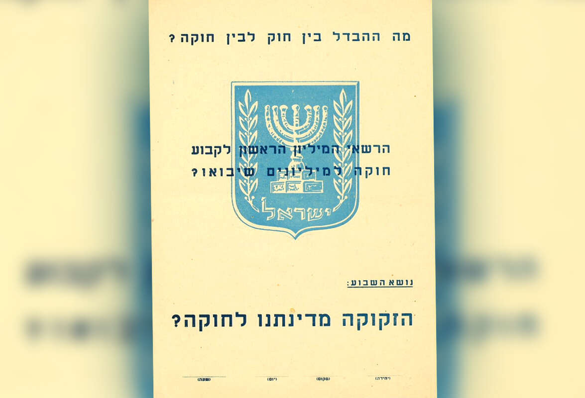 לאורך כל חודש יוני 1950 עסק הציבור הישראלי בשאלה מרכזית אחת: חוקה לישראל - כן או לא. כתבות רבות בנושא פורסמו בעיתונים, עם כותרות דוגמת "כן חוקה או לא חוקה?" ("על המשמר"), "חוקה טובה - חוקה רעה" ("הבֹקר"), "חוקה, או התחמקות ממנה?" ("חרות") ועוד.