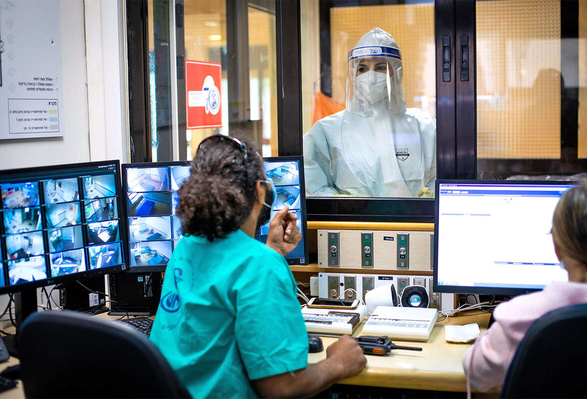 "מעבר לכך, התקנו מצלמות על המחשבים שנמצאים בחדרי הרופאים. כל הפסיכולוגים, העובדים הסוציאליים והמרפאים בעיסוק יכולים לשוחח עם החולים בפרטיות. למתחם הקורונה נכנס רק מי שחייב - רופאים, אחים ואחיות, מאבטחים ומנקים.