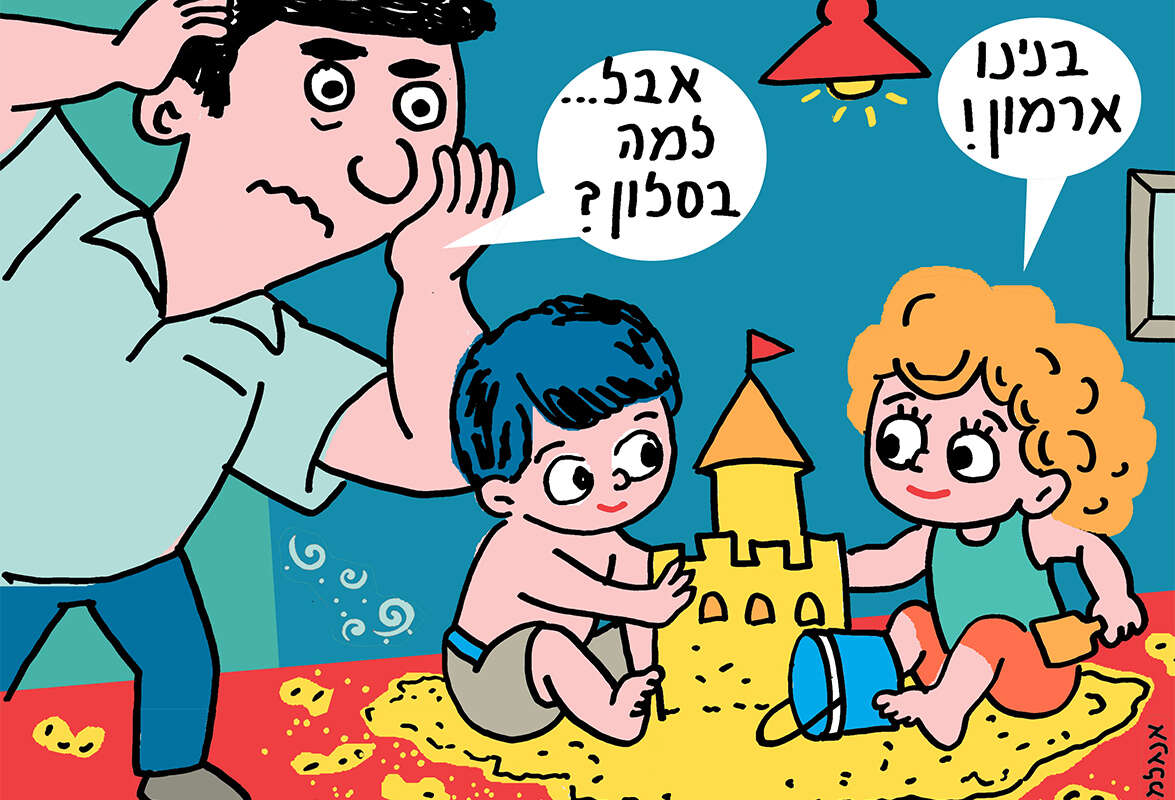 ברגע שהנעל הראשונה ירדה, אלפי גרגירי חול התעופפו להם בקשת ארוכה עד שהתפזרו בכל רחבי הסלון. הוא הסתכל עלי במבט דואג, אבל באותו רגע כל מה שהתחשק לי לעשות זה לכרוע על הרצפה, כמו אדם שהגיע לארץ על מרבד הקסמים, ולנשק כל גרגיר וגרגיר, כי הם ייצגו עבורי שש שעות שלמות שבהן הילדים שלי שהו במקום אחר.