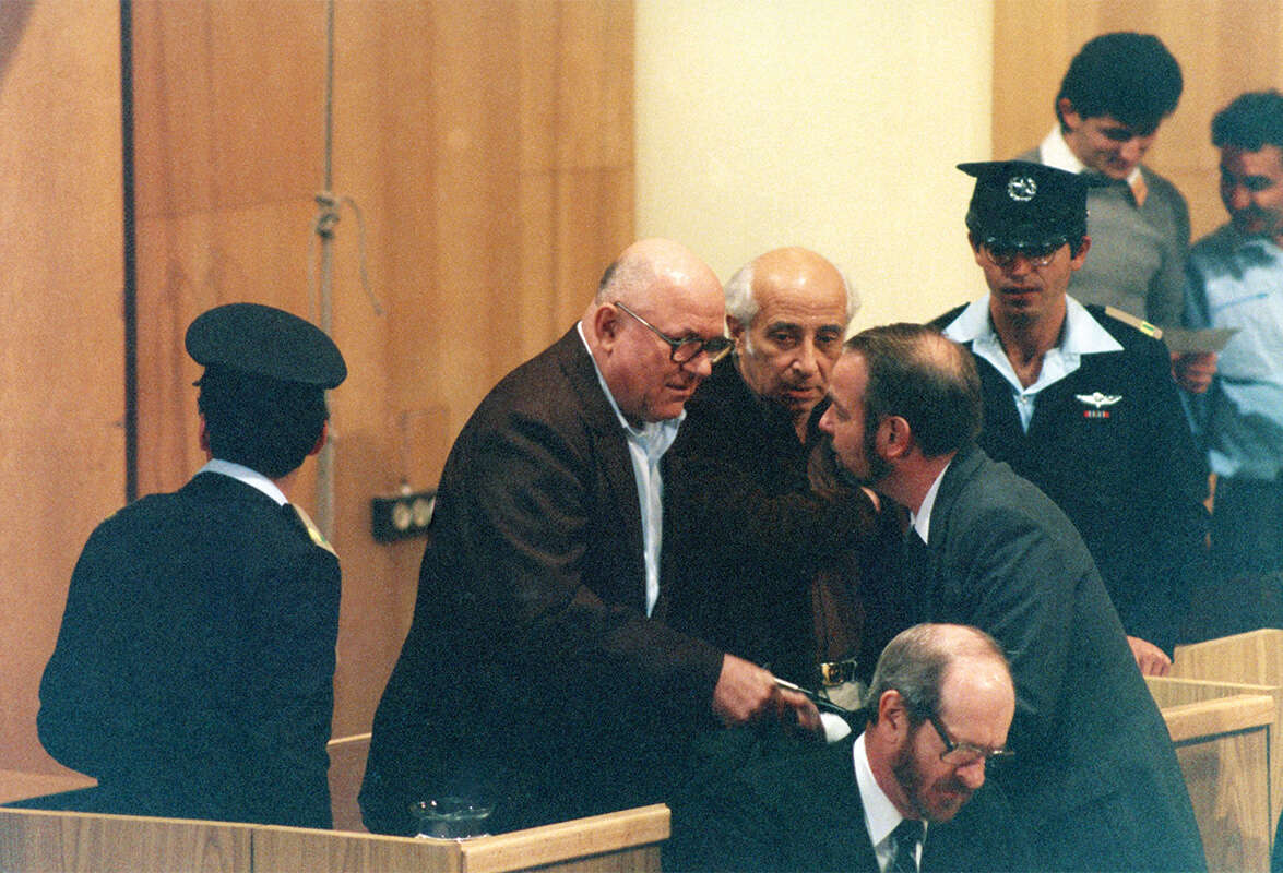 יורם שפטל (מימין) ודמיאניוק מסתודדים במשפט, 1987 // צילום: אי.פי // יורם שפטל (מימין) ודמיאניוק מסתודדים במשפט, 1987 // צילום: אי.פי