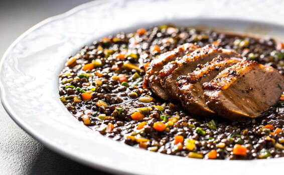 ראגו עדשים שחורות וחזה ברווז. פטריות פורצ'יני וציר בקר יוסיפו למנה עושר ועומק // צילום וסטיילינג: איתיאל ציון