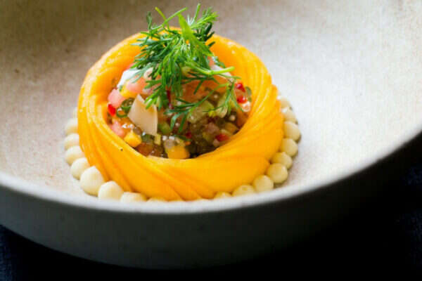 סלט מנגו, איולי ליים, ירקות וטפיוקה. מנה אלגנטית ופשוטה // צילום וסטיילינג: איתיאל ציון