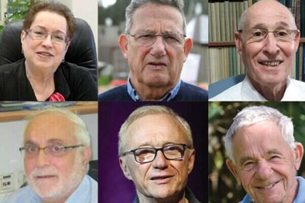 בכיוון השעון מימין למטה: יהודה הראל, דויד גרוסמן, פרופ' שלמה הבלין, פרופ' נאווה בן צבי, רון בן ישי, פרופ' אלישע קימרון// צילומים: קוקו, גדעון מרקוביץ', אייל מרגולין/ג'יני,