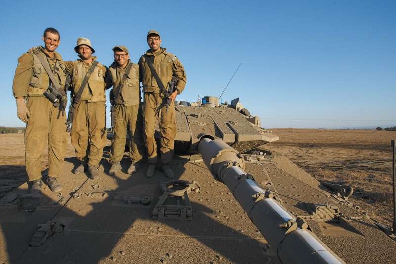 האנשים שבטנק: (משמאל לימין) סמל טל שטייר, רב"ט רז נויימן, רב"ט יהושוע סוואטז ורב"ט רותם עמרם // צילום: אנצ'ו ג'יני