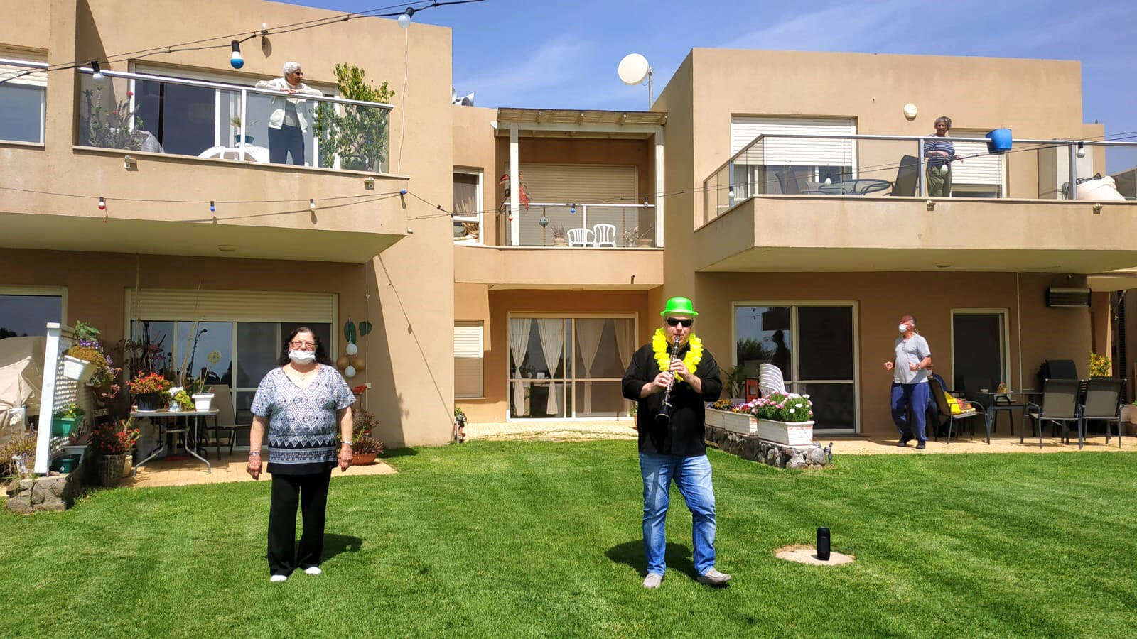 "הגיע שחקן למופע של סיפור סיפורים, וגם רקדני טנגו. יש לנו שתי חצרות נפלאות ומטופחות, וכולם מתאספים לפי המגבלות, עם מסיכות וריחוק, ואנחנו נהנים מאוד מהאירועים האלו. הצוות הטכני של הבית דואג להפעיל רמקולים ותאורה כמו בתיאטרון אמיתי.