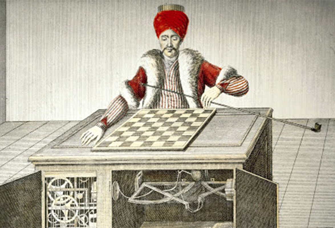 הברון וולפגנג פון קמפלן (1804-1734) ידוע כאחד מחלוצי האינטליגנציה המלאכותית, אם לא במעשה לפחות ברעיון. המצאתו המפורסמת ביותר היתה 'הטורקי', מעין רובוט למשחק שחמט, שאותו הציג בווינה ב־1769 בפני הקיסרית האוסטרו-הונגרית מריה תרזה. מכונת המשחק הזו עוצבה כשולחן שחמט שמאחוריו עמד לכאורה השחקן שהעניק למכשיר את שמו. לא היה זה אלא חצי גופו העליון של גבר, חבוש בטורבן לראשו, לבוש בבגדים טורקיים של אותה תקופה (כפי שדמיינם פון קמפלן). פון קמפלן תר את אירופה עם שחקן השחמט האוטומטי שלו שהכניע רבים, ובהם מצביאים ומדינאים כנפוליאון בונפרטה ובנג'מין פרנקלין. אם לא היתה זו אחת מהתרמיות הגדולות ביותר בהיסטוריה האנושית, הרי ללא ספק היתה אחת המשעשעות שבהן. בתוך המתקן של פון קמפלן הסתתר אמן שחמט שנבחר לא רק בשל יכולת החשיבה שלו אלא גם, מן הסתם, בשל יכולותיו הגופניות.