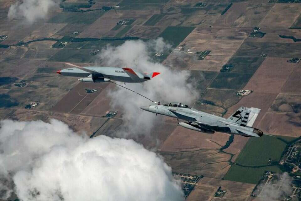 בסוף השבוע תדלקו צוותי בואינג וחיל הים האמריקני מטוס מסוג F/A-18 סופר הורנט באמצעות מטוס ללא טייס • בצי מתכננים להצטייד בטייסת מל"טי תדלוק שמוגדרים ככאלו שמשנים את כללי המשחק"