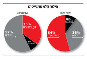 על פי נתונים שהוצגו בשבועות האחרונים במערכת הביטחון, אם לא יחול שינוי רק 41% יתגייסו לצה"ל בשנת 2050, 6.3% ישרתו בשירות לאומי, ו־52.3% מבני ה־18 לא ישרתו בצה"ל או בשירות לאומי.