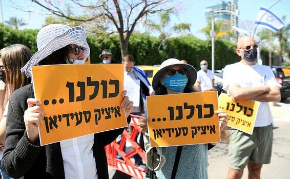 מאות המוחים, בהם גם הלומי קרב, נשאו שלטים שעליהם נכתב "דם נכי צה"ל אינו הפקר" ו"כולנו איציק סעידיאן" • גורמים בארגון נכי צה"ל: "גנץ הקים עוד ועדה לרפורמה במקום לנקוט בצעדים מיידים" • מצבו של הלום הקרב שהצית עצמו ממשיך להיות קריטי: "נלחמים על חייו"