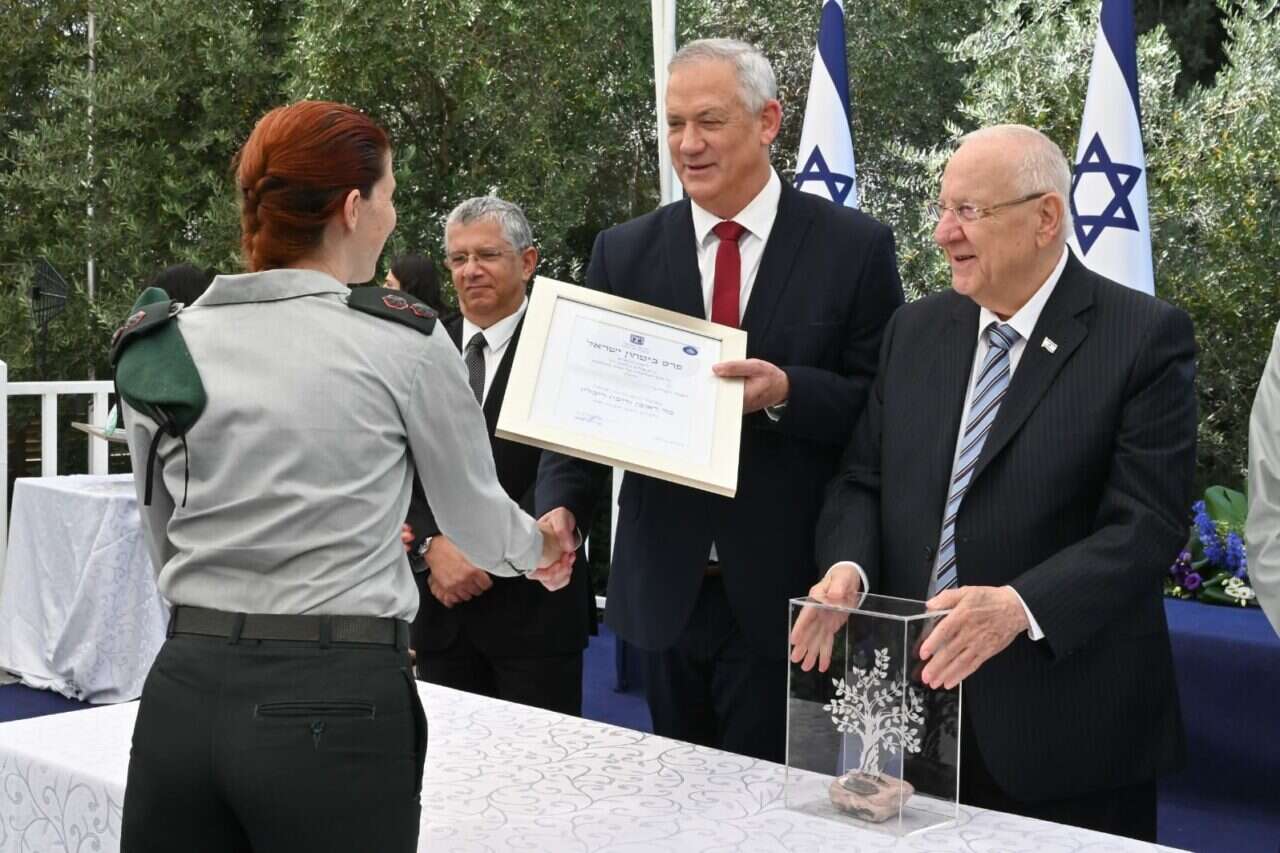 נשיא המדינה ראובן ריבלין, שר הביטחון, בני גנץ, הרמטכ"ל רא"ל אביב כוכבי ומנכ"ל משרד הביטחון אלוף (מיל') אמיר אשל, העניקו הבוקר (שני) בטקס חגיגי בבית הנשיא בירושלים את פרס ביטחון ישראל לשנת תשפ"א, עבור פרויקטים ופעילויות שתרמו לביטחון המדינה ולשמירה על עוצמתה ויתרונה האיכותי בשדה הקרב, הן בהיבט הטכנולוגי והן בהיבט המבצעי. השנה, באופן חריג, אישר שר הביטחון גנץ להעניק ארבעה פרסים ולא שלושה כבכל שנה.