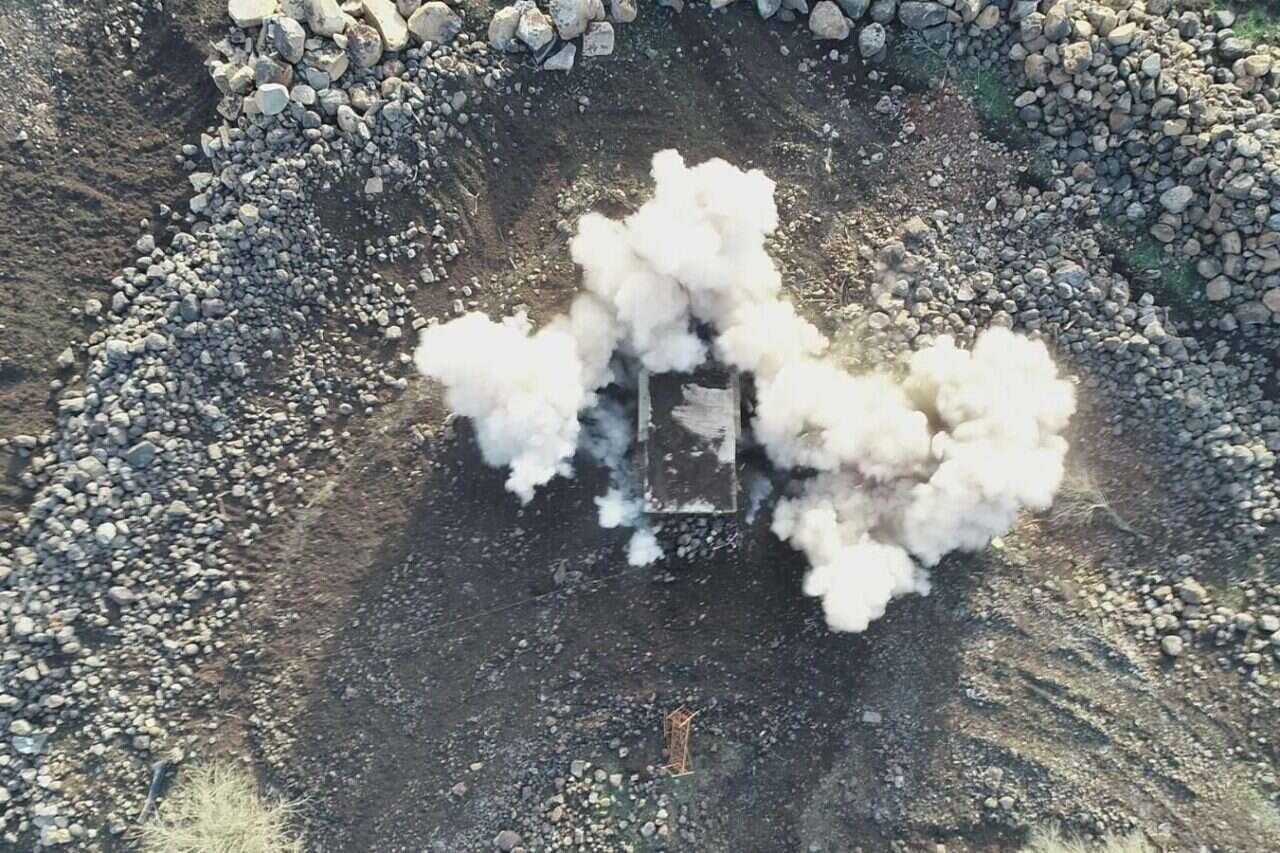 תיעוד: כך הושמדה תחמושת שהתגלתה בבונקר סורי ישן ברמת הגולן // צילום: אגף דוברות והסברה, משרד הביטחון