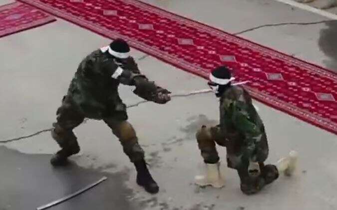 בסרטון שהופץ ברשת, נראים לוחמי הארגון הקיצוני ששולט על אפגניסטן כשהם מתאמנים בלחימה באמצעות חרבות קצרות, בדיוק כמו בימי הביניים, ומשספים את הגרונות של יריביהם. לאחר מכן הם מזנקים דרך טבעת של אש, ומדגימים שבירת לוחות באמצעות רגליהם.