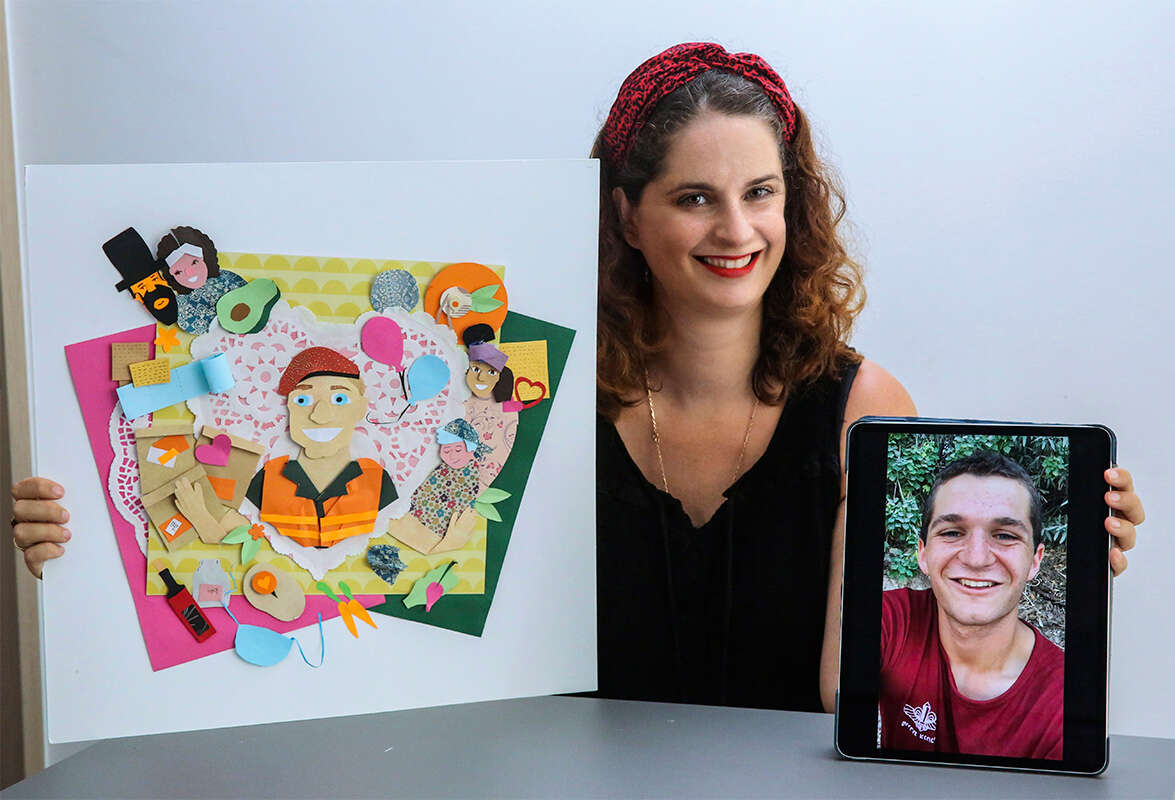 "כשאמרו לי שהסיפור של מייקל הוא על בני ברק חשבתי שהיצירה שלי, כמו הסיפורים, תהיה אפורה - על קשיים של קורונה. אבל רגע אחרי שהוא התחיל לדבר גיליתי כל כך הרבה שמחה ונתינה. יצאתי כל כך אופטימית", מספרת אפרת דה בוטון, מאיירת, מעצבת ואמנית נייר, שיוצרת פורטרטים בשכבות נייר. בעודה מאזינה למייקל היא עיצבה את דמותו על פי האירועים שחווה בגל הראשון של הקורונה.