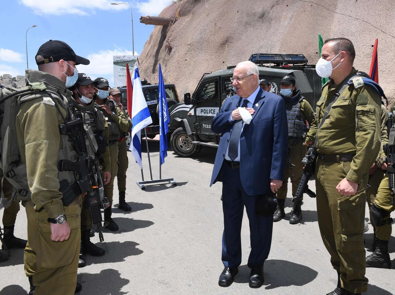 "לפני חגי ישראל, נחמה הייתה נוהגת לעבור במחסומים ובבסיסים ולחבק את החיילות והחיילים שלנו, הגיבורים שלנו, ש'נשארו שבת', כדי להמשיך במלאכת הביטחון השוטף", סיפר הנשיא לחיילים במחסום. את הביקור ליווה מפקד גדוד המעברים ארז, סא"ל ארז דוד.