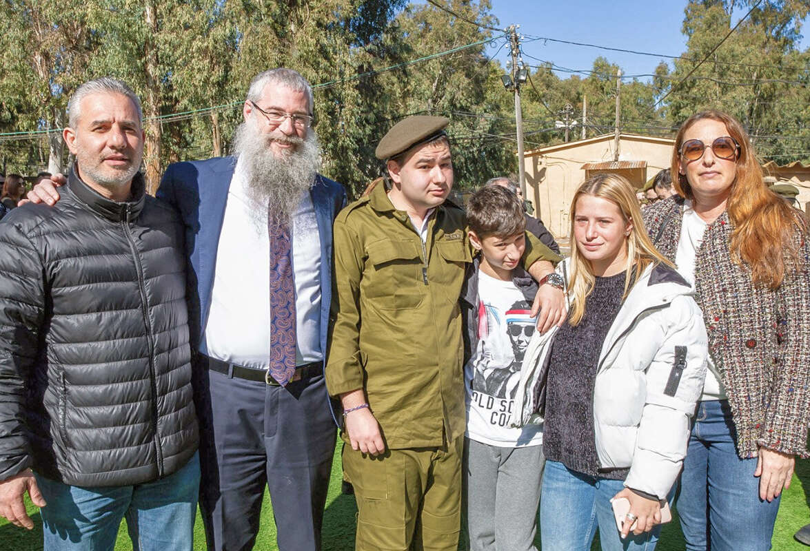 אורי יוחנן (במרכז) ובני משפחתו עם הרב בלניצקי, צילום: רבקה זנד