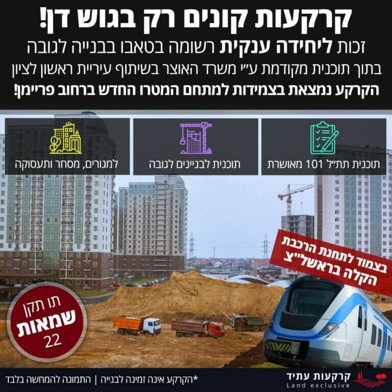 יגאל אלקיים, מנכ”ל ומייסד “קרקעות עתיד” ובעל ניסיון של 15 שנה בענף הנדל”ן מסביר כי מדובר בתוכנית העתידה לכלול בנייני מגורים בשילוב מתחם מסחר ותעסוקה. “משקיעים מביני עניין מבינים כי מדובר בתוכנית אטרקטיבית ביותר, קרקעות בסמוך לתחנות המטרו העתידיות צפויות לנזק בשווי בצורה חסרת תקדים. בנוסף לתוכנית המדוברת, לרכישת הקרקע יתרונות רבים: טאבו פרטי, ליווי עו”ד עד קבלת המפתח כולל הסכם שיתוף מסודר”.
