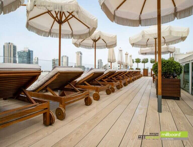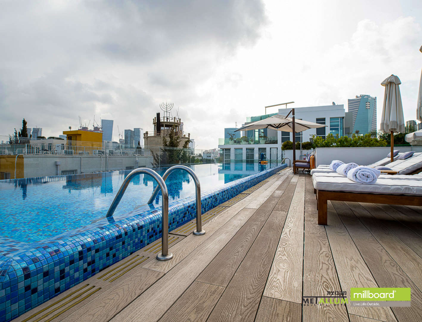 זהו השלב הראשון בהחלפת הדקים הקיימים במלון לדקים שלנו. הדק הוחלף בקומת הבריכה האקסקלוסיבית של המלון. בחודשים הקרובים נמשיך בהחלפת הדקים בקומות הנוספות.