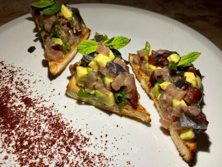 ברוסקטות טונה אדומה ודובדבנים / מתכון ל-3 מנות