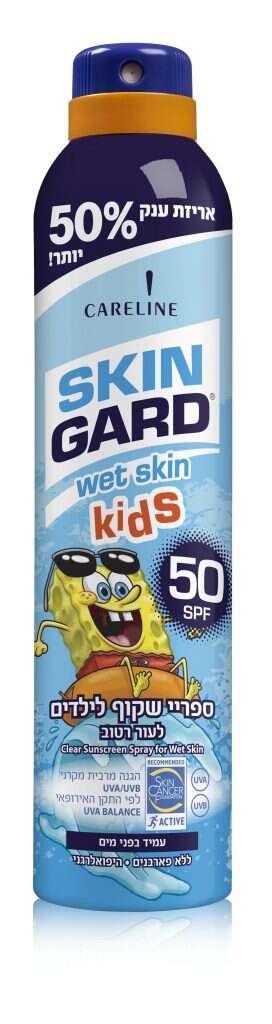 מלבד השמחה של הילד כשהוא רואה את דמותו של בובספוג על אריזת המוצר, ספריי ההגנה השקוף של ‘סקין גארד’ מותאם במיוחד לעור רטוב. לכן, אם אתם מתכננים לילדיכם פעילויות רבות הכוללות ים ובריכה בקיץ הזה, המוצר הזה הוא בשבילכם – הקלות שבריסוס הספריי, לצד העובדה שאפשרי לרסס את הילד בין לבין מבלי לנגב אותו לפני המריחה ועדיין להיות רגוע ובטוח שישמור על עורו, נותנים לו יתרון גדול. מחיר הספריי באתר שראל פארם 34.9 ₪.