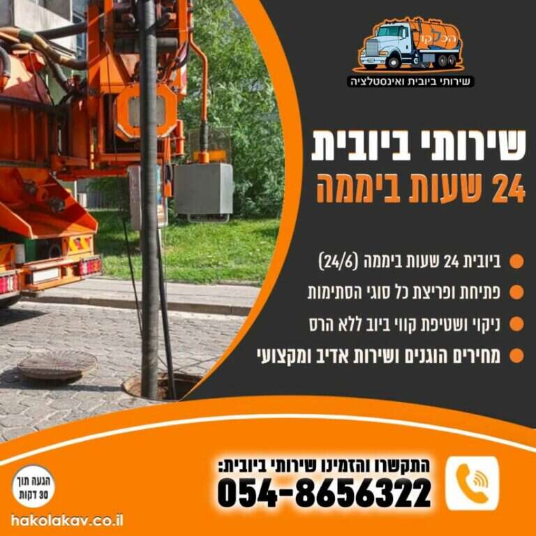 אם אתם מחפשים כתובת עבור ביובית פתיחת סתימות – מומחים לביוב, אנו בחברת “הכל לקו” מחכים לכם. 15 שנים של ניסיון בתחום מאפשרות לנו לבצע שירותי ביובית בצורה חלקה ומקצועית לרווחתם של הלקוחות.