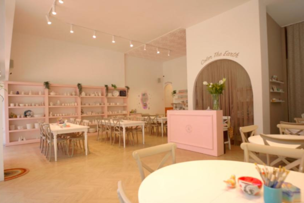 כאמור, הסטודיו מהווה חלק משמעותי מהחוויה, כאשר שילוב הגוונים הורודים, יחד עם פינות ישיבה מעניינות וכלי קרמיקה לבנים מוכנים לצביעה מעודדים את היצירתיות ומשרים אווירה של רוגע ושלווה.