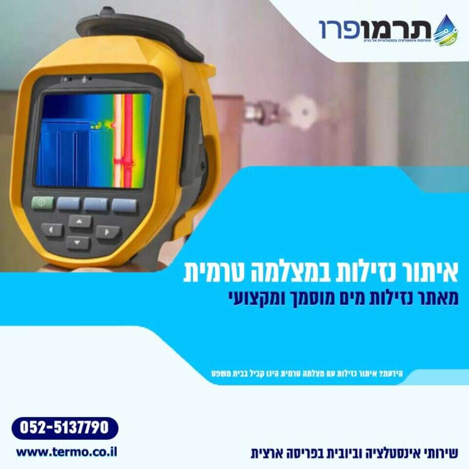 - איתור נזילות ללא הרס – אם בעבר היה צורך בהרס קירות ומרצפות על מנת לאתר את מקור הנזילה, היום הפעולה מתבצעת בעזרת איתור נזילות במצלמה טרמית בצורה מדויקת וללא הרס כלל. יתרונותיו של הצילום הוא בכך שהוא ממקד את האינסטלטור בשורש הבעיה ללא השערות וספקות. הוא מגלה לנו את הנסתר מתחת לרצפתנו ובתוך קירותינו.