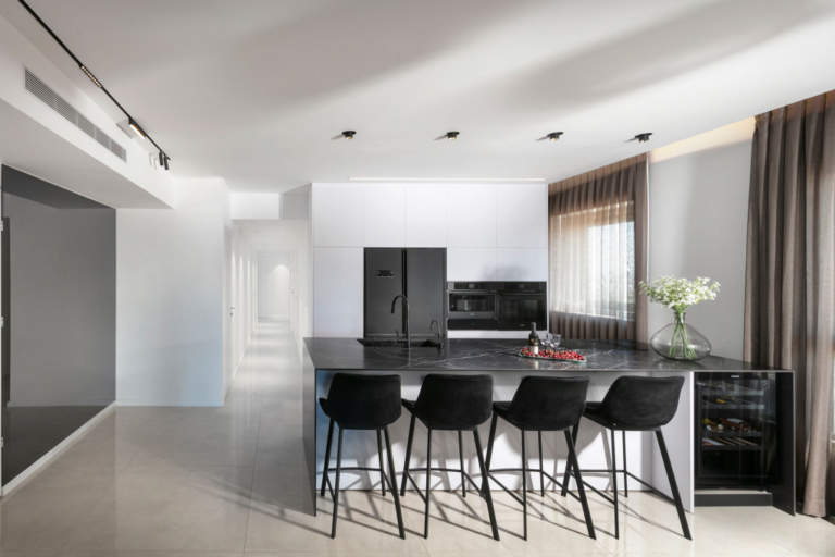 מטבח מודרני שחור לבן – פרקטי ומטשטש לכלוך