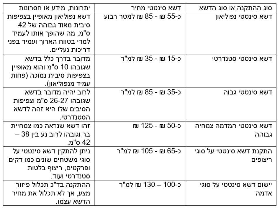 דשא סינטטי מחיר כולל התקנה
