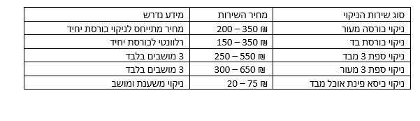 - סוג הניקוי (ניקוי ספה עד הבית יעלה תמיד יותר)
