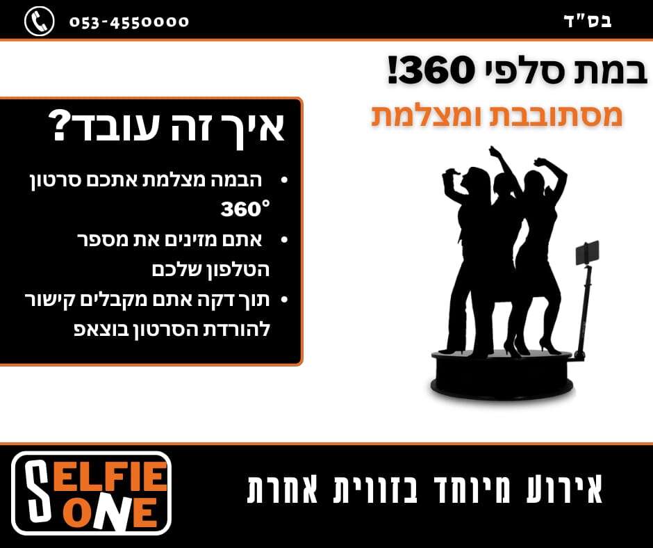 מדובר בבמת סלפי מסתובבת שמצלמת את כל מי שעומד עליה בזווית של 360 מעלות. גולן הבעלים של ‘גולן הגברה’ מפרט מעבר: “ Selfie One היא במה בקוטר של 80 סנטימטר כך שיכולים לעמוד עליה עד שלושה אנשים בבת אחת. את הנעשה על הבמה מצלמת מצלמה מיוחדת שמסתובבת ב- 360 מעלות כך שהיא תופסת את האורחים ומנציחה אתם מכל זווית אפשרית. האורחים עצמם יכולים לקפוץ, לצרוח, להתחבק, להתנשק, לעשות פרצופים וכל דבר שעולה להם לראש. לשיגעון ולטרפת של Selfie One מתווספת אפליקציה מובנת מיוחדת שמוסיפה אפקטים מרהיבים כמו זיקוקים, אש, עשן, בלונים והפתעות נוספות”.