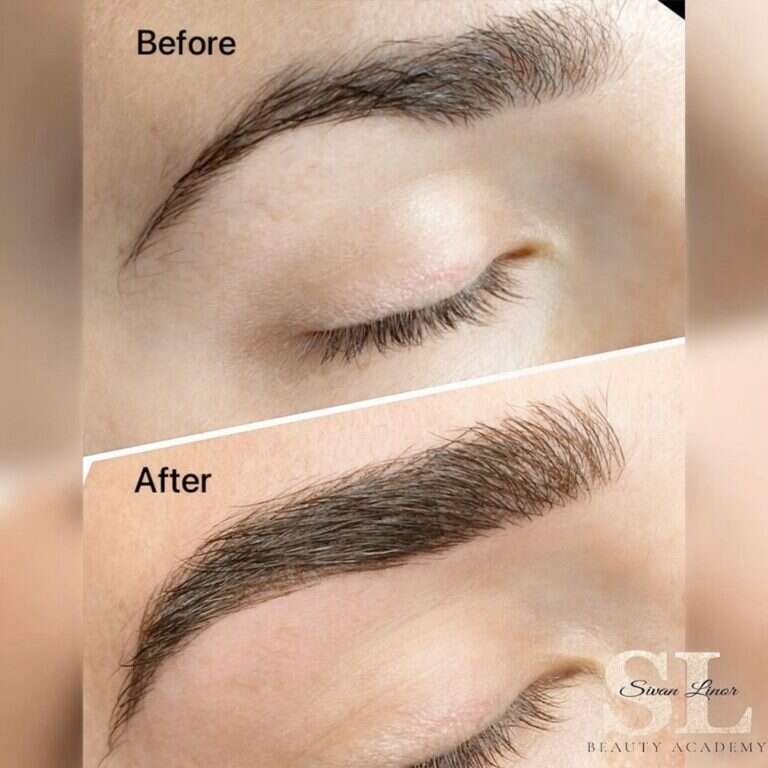 “מדובר בשני טיפולים, באורך של בערך כשעתיים כל אחד, ובהפרש של חודש/חודש וחצי האחד מהשני. התהליך נקרא מיקרו-פיגמנטציה ומה שקורה בעצם זה שאני מחדירה את הפיגמנט בשכבה העליונה של העור, כך שהטיפול מאוד עדין, ללא טראומה לעור ולגמרי הפיך. כן חשוב לי לומר שאני אוהבת לשדרג את המראה הטבעי כלומר, לא יהיה מצב שתבוא אליי בחורה עם גבות בהירות ועדינות ותצא עם גבות כהות ועבות או מוגזמות. אני לא עובדת עם שבלונות, אלא משרטטת לכל אישה באופן אישי לפי תווי הפנים שלה, כי חשוב לי המראה הטבעי והאסתטי.”