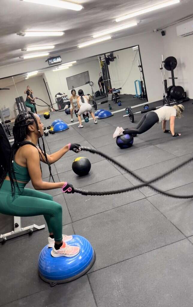 הגעתי לסטודיו המרשים של אבי בשעות הבוקר המוקדמות לפני המתאמנים. סיפרתי לו שאני מתקשה באימונים ומוותרת בקלות כשקשה והוא הציע שננסה לעשות כמה תרגילים והוא ינחה אותי – אני מודה שאפילו נהניתי.