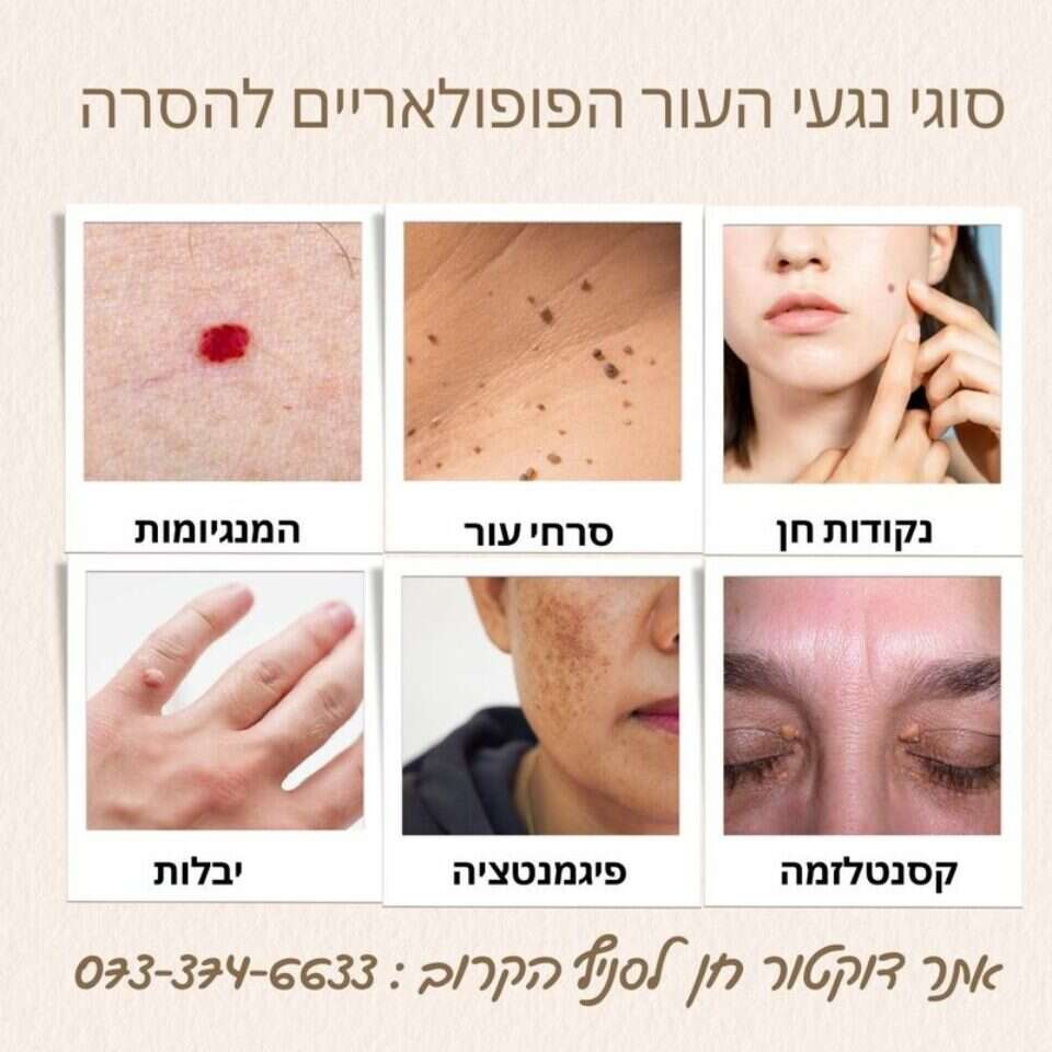 להלן נגעי העור הפופולאריים להסרה ושיטות הטיפול המומלצות: