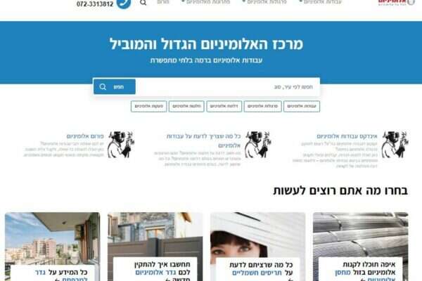 האתר מספק מידע מקצועי שמאפשר לצרכנים ולבעלי מקצוע כאחד להבין את האפשרויות הקיימות בשוק, לבחור את המוצרים המתאימים, ולנהל פרויקטים באיכות הגבוהה ביותר. מידע זה נגיש ונוח לשימוש, ומכסה את כל ההיבטים של תחום האלומיניום – מפרגולות, דרך חלונות ודלתות, ועד לגדרות ותשתיות נוספות.פנו אלינו לקבל הצעת מחיר מעודכנתמעבר לעובדה שALUMI הוא פורטל תוכן הגדול והמוביל ביותר בישראל בתחום האלומיניום, אנחנו גם יודעים לתת לכם את הפתרון הטוב ביותר לכל עבודת אלומיניום שאתם צריכים – מהגדולה ביותר (שיפוצים מלאים) ועד לתיקוני תריסים ועבודות קטנות – והכל בפריסה ארצית. צוות המתקינים שלנו הוא מהטובים שיש, מפעל האלומיניום איתו אנחנו עובדים הוא המומלץ ביותר –
